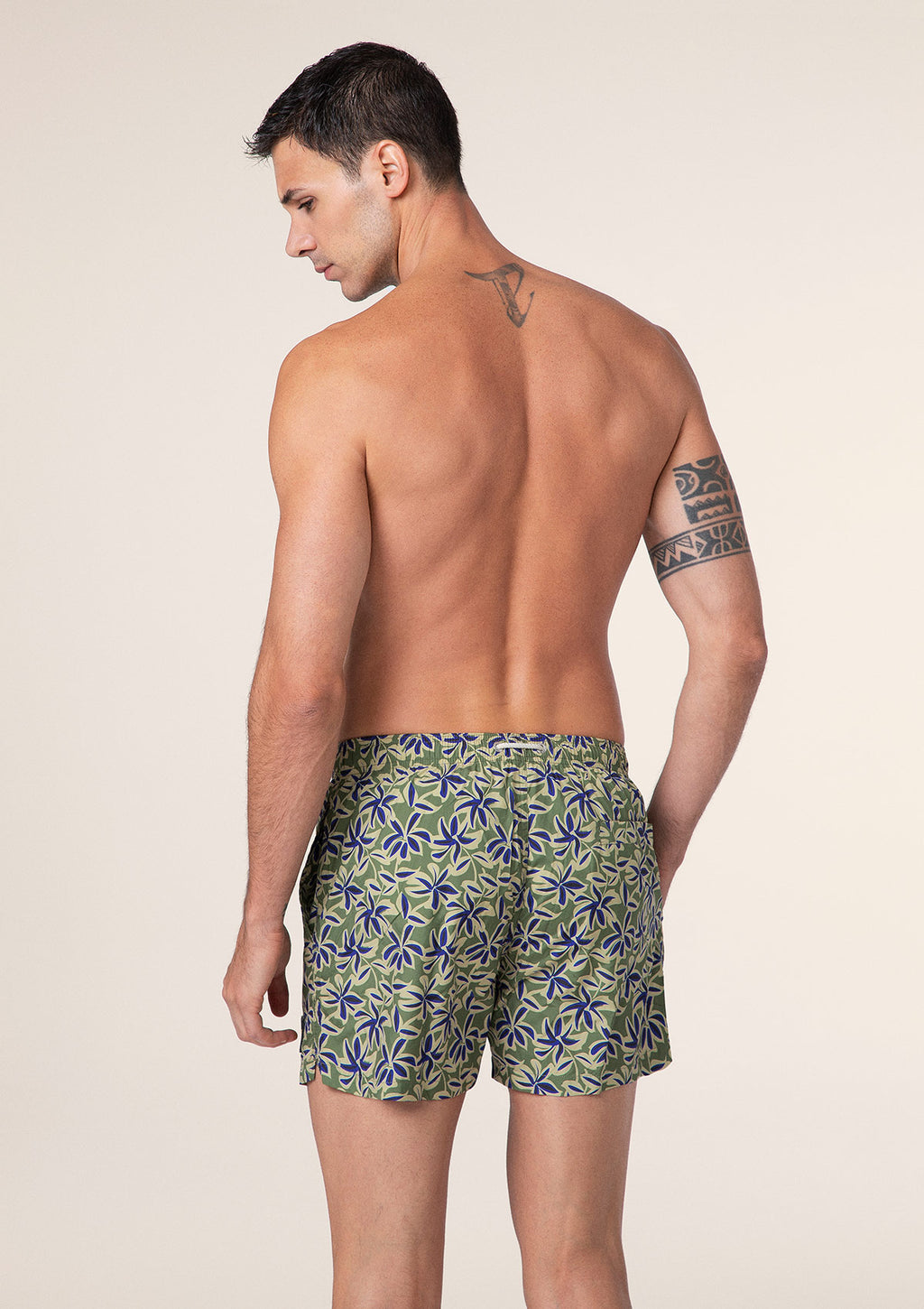 Detaje: Pantallona të shkurtra të rregullta të shtypura të rregullta të pajisura me xhepa anësore dhe xhep të pasmë